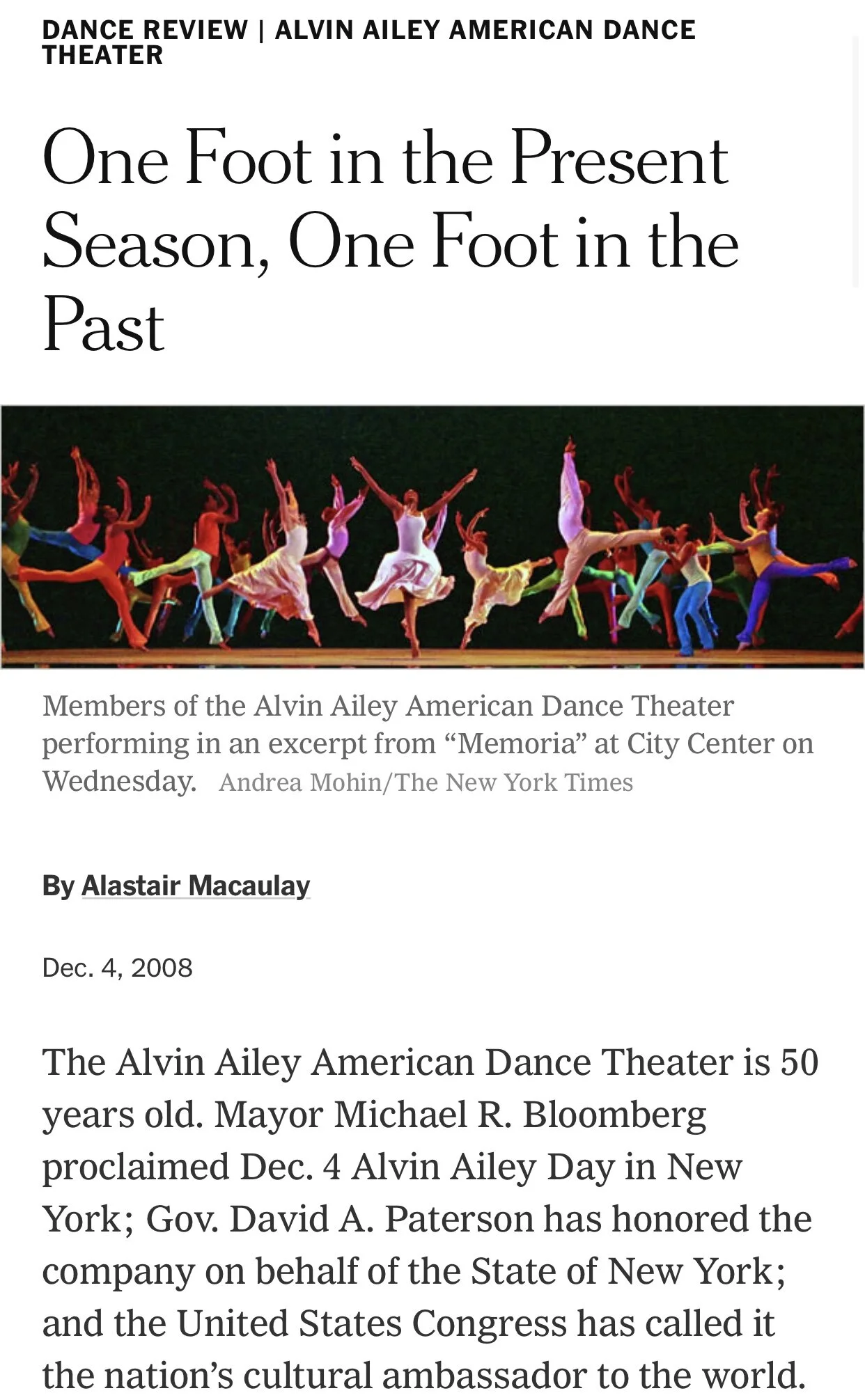 148: the “New York Times” review of the December 4, 2008, gala by the Alvin Ailey American Dance Theatre