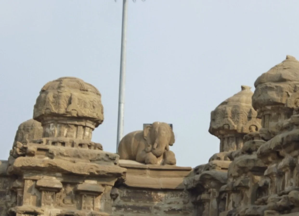 5: The sculpted elephant on the roof at a second temple, the Kailasanatha Temple, at Kunchipuram