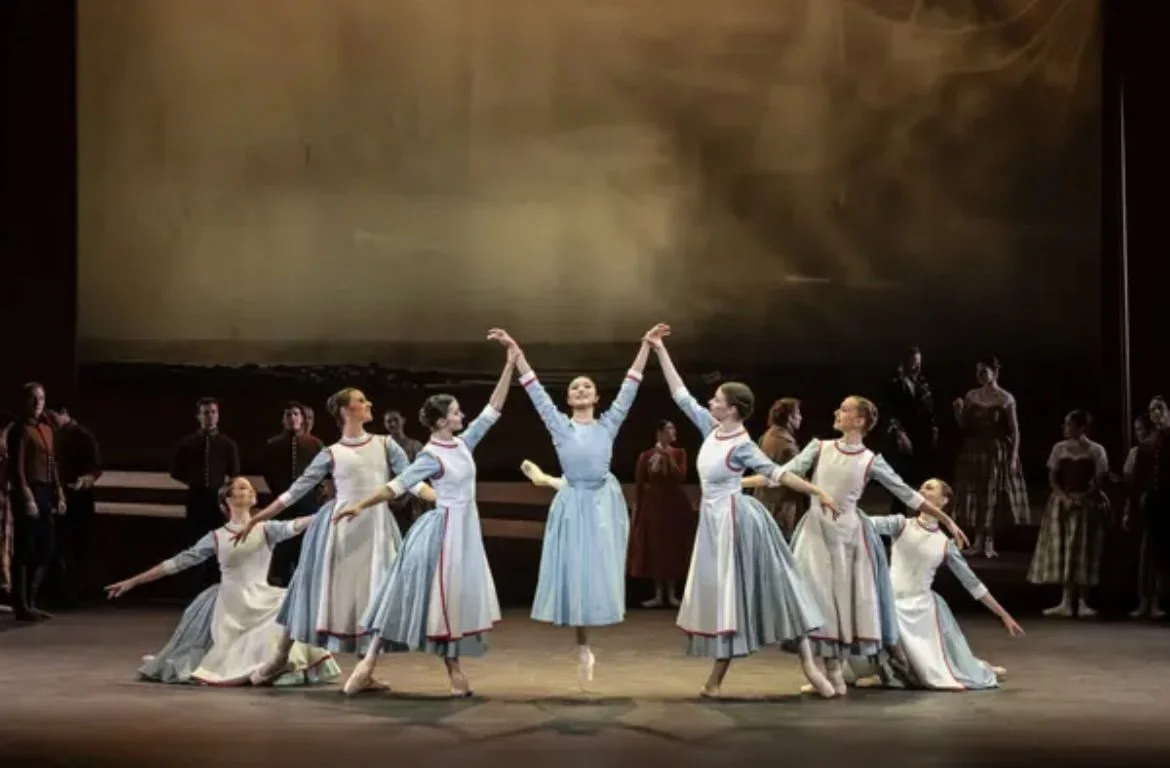 4: Raymonda at the centre of an ensemble of Crimean War nurses. Shiore Kase as Raymonda. Photograph: Johan Persson.